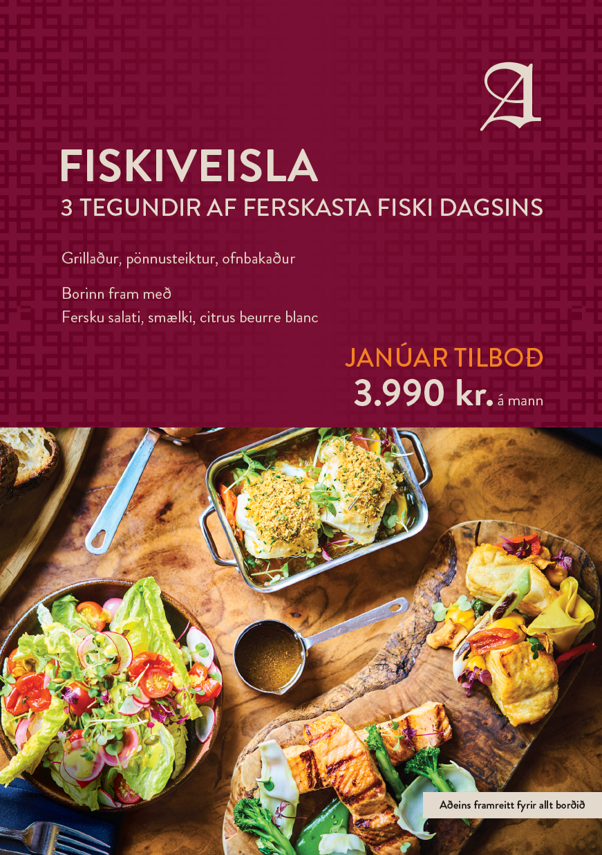 Fiskiveislan er í boði í hádeginu mánudaginn til föstudaga og er á tilboði á